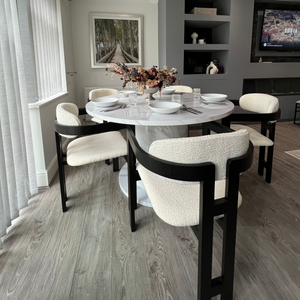 Luna Black Round Table & Rio Bouclé Chairs Set