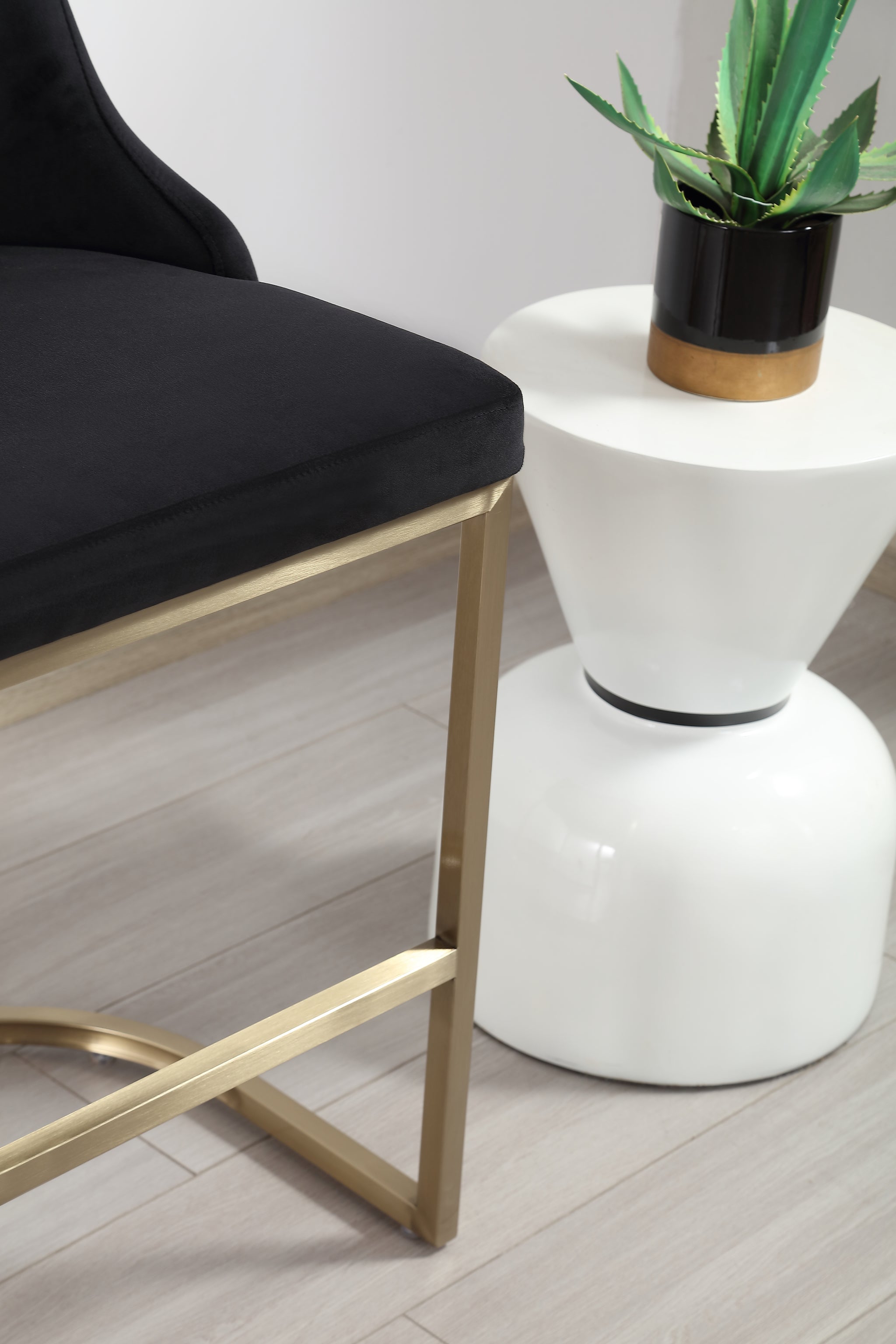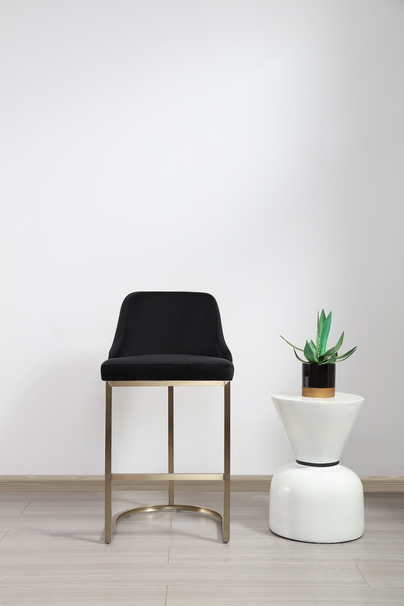 | Description | The Faith Black and Gold Barstool brings luxury and contemporary flair to your home. With its soft black velvet fabric, the stool boasts a curved backrest and curved bottom frame for both elegance and comfort. A stylish supporting pillar at the back adds a touch of sophistication, while the brushed gold stainless steel finish elevates its modern aesthetic. Perfect for kitchen islands or bars, the Faith barstool combines chic design with lasting style, making it an ideal statement piece in any setting. |