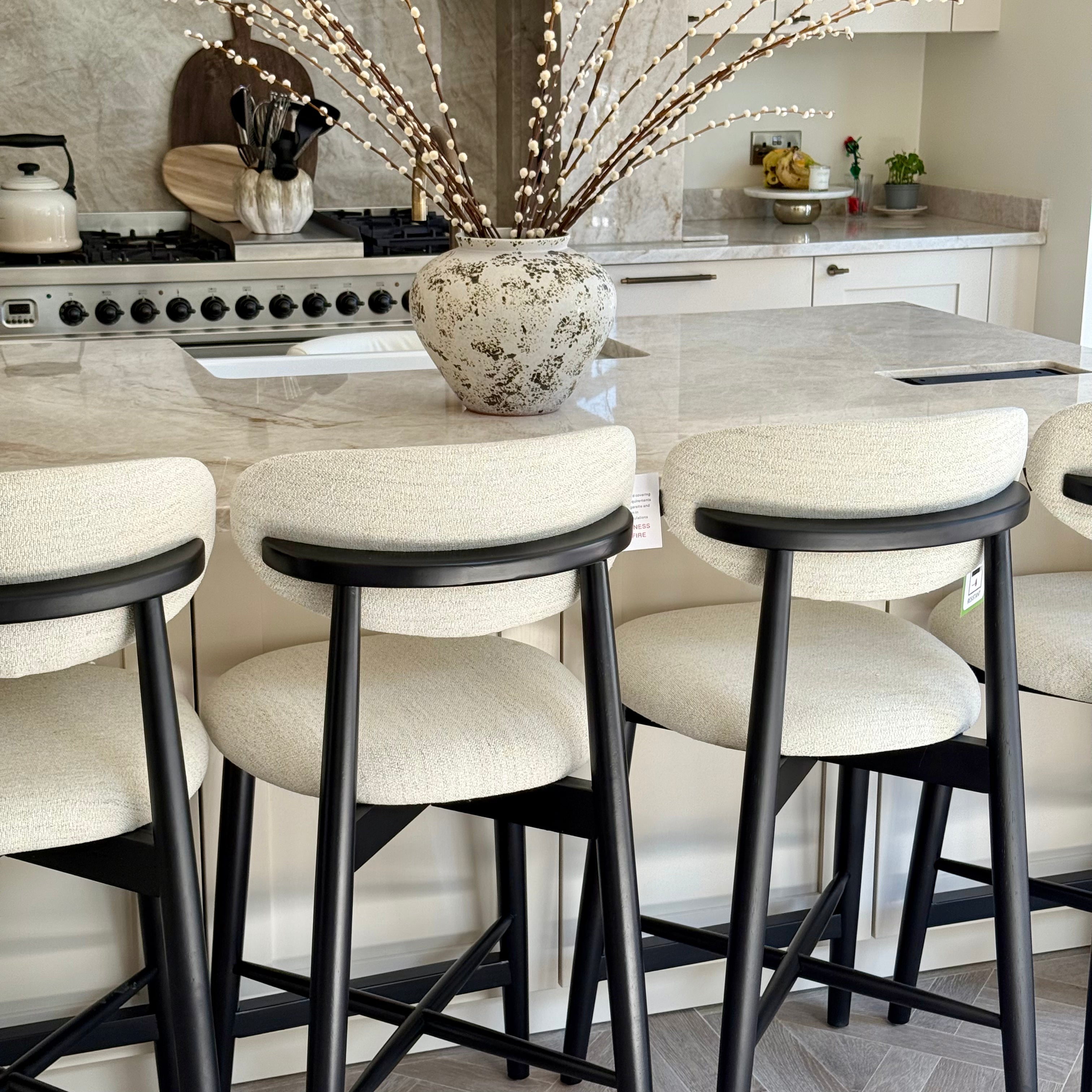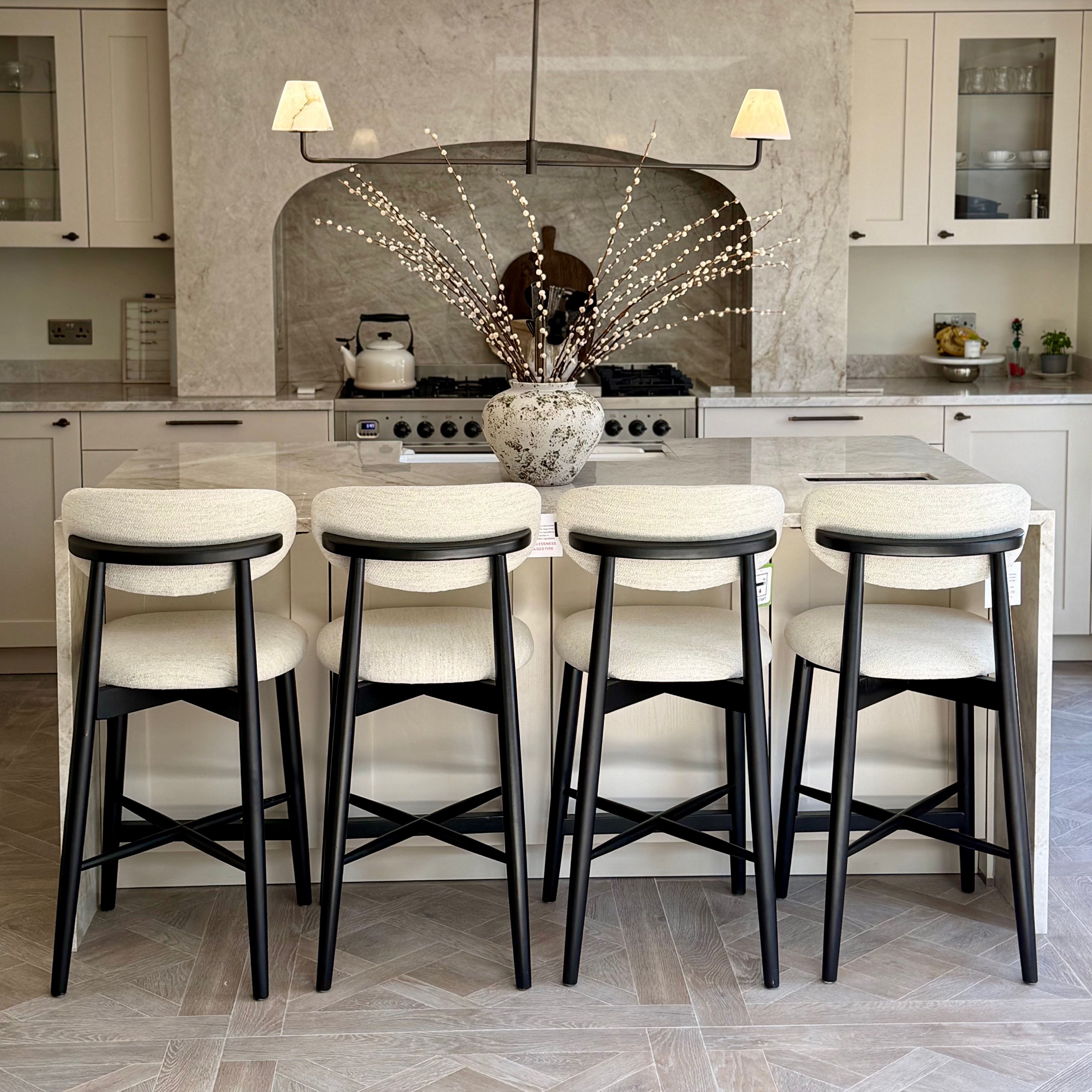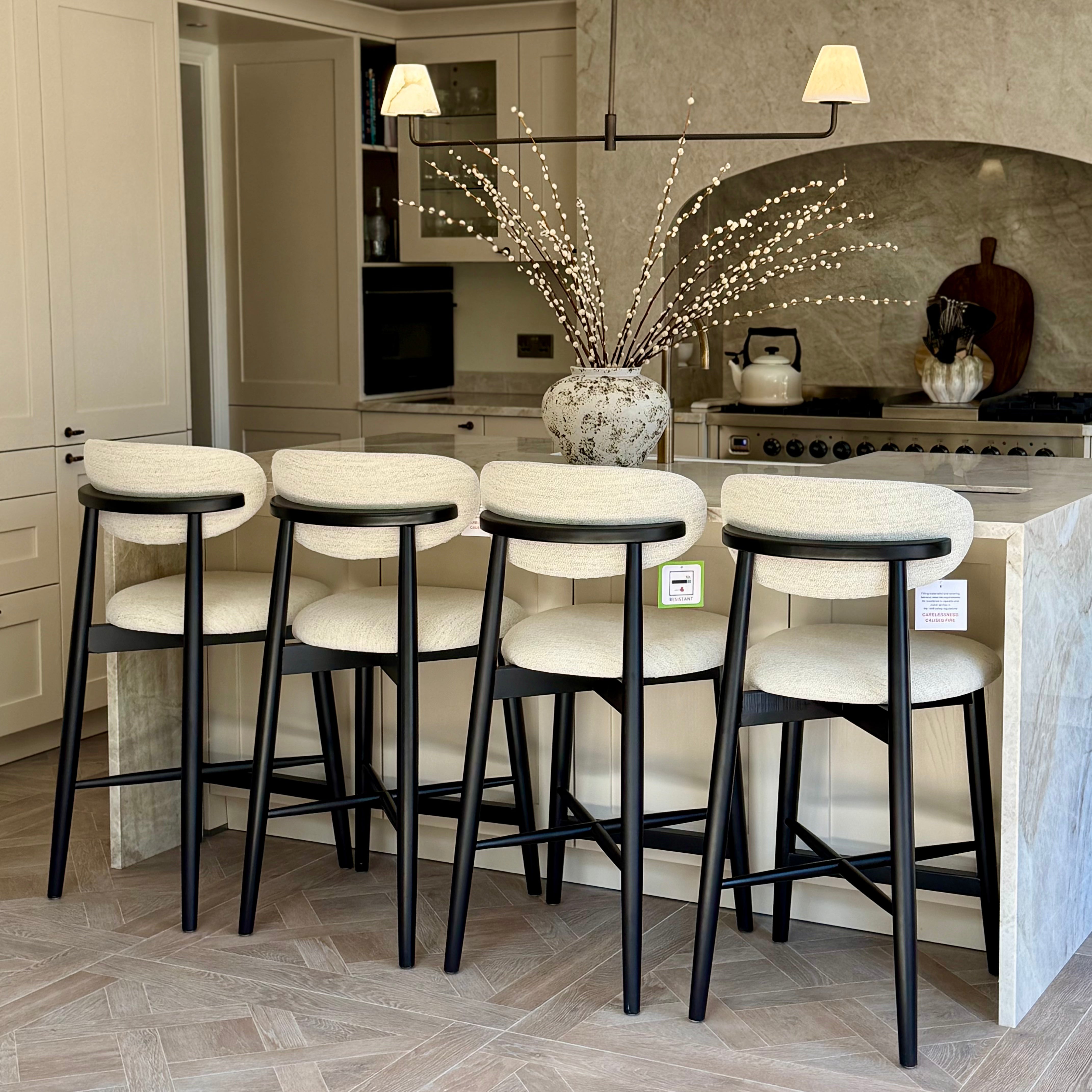 The Arne Black Barstool is the perfect blend of simplicity and style. Featuring a rich black wooden frame paired with soft cream linen fabric, this barstool exudes warmth and elegance. Its clean, minimalist design makes it a timeless addition to any kitchen or bar area, effortlessly complementing both modern and classic interiors. Designed for both comfort and aesthetics, the Arne Black Barstool is as inviting as it is stylish.