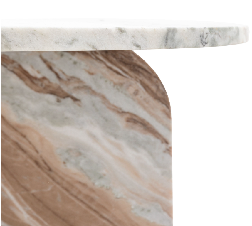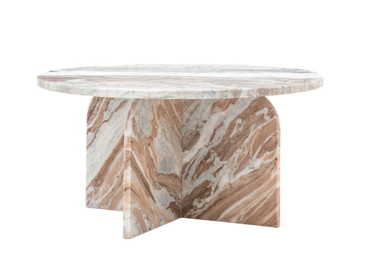 This coffee table is a breathtaking centerpiece that celebrates the natural beauty of solid marble. Its round tabletop showcases intricate, unique veining patterns, making each piece a one-of-a-kind work of art. The smooth marble surface is paired with a sleek arched base, blending timeless elegance with modern sophistication. This coffee table allows you to create a cohesive and refined living room ensemble that highlights the striking allure of marble craftsmanship.
