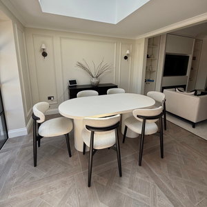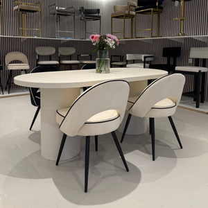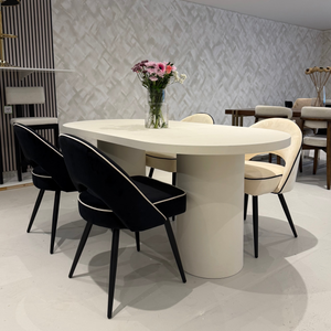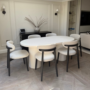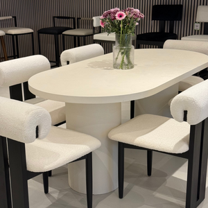 Cloud Micro Cement Oval Dining Table & Boba Bouclé Chairs Set