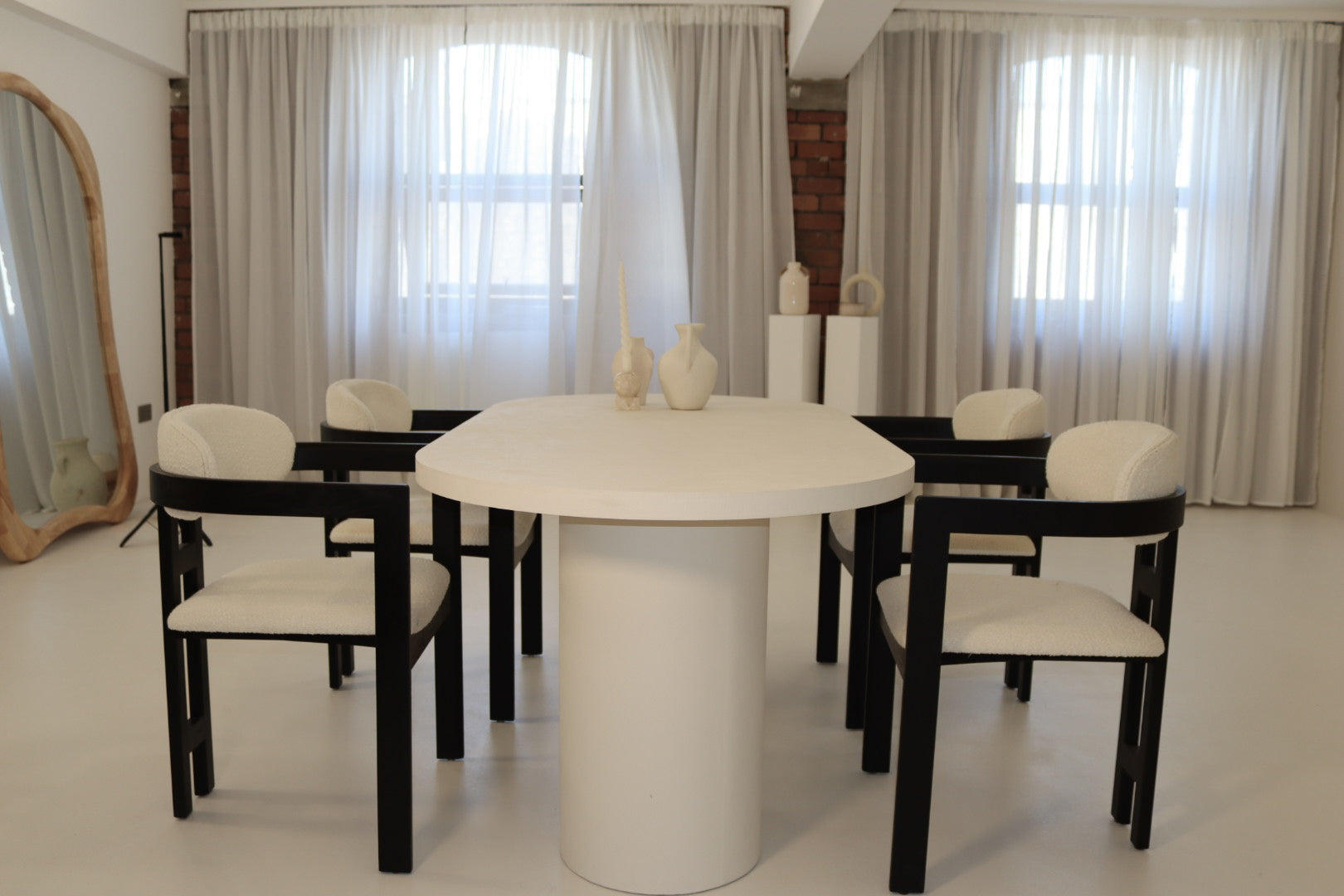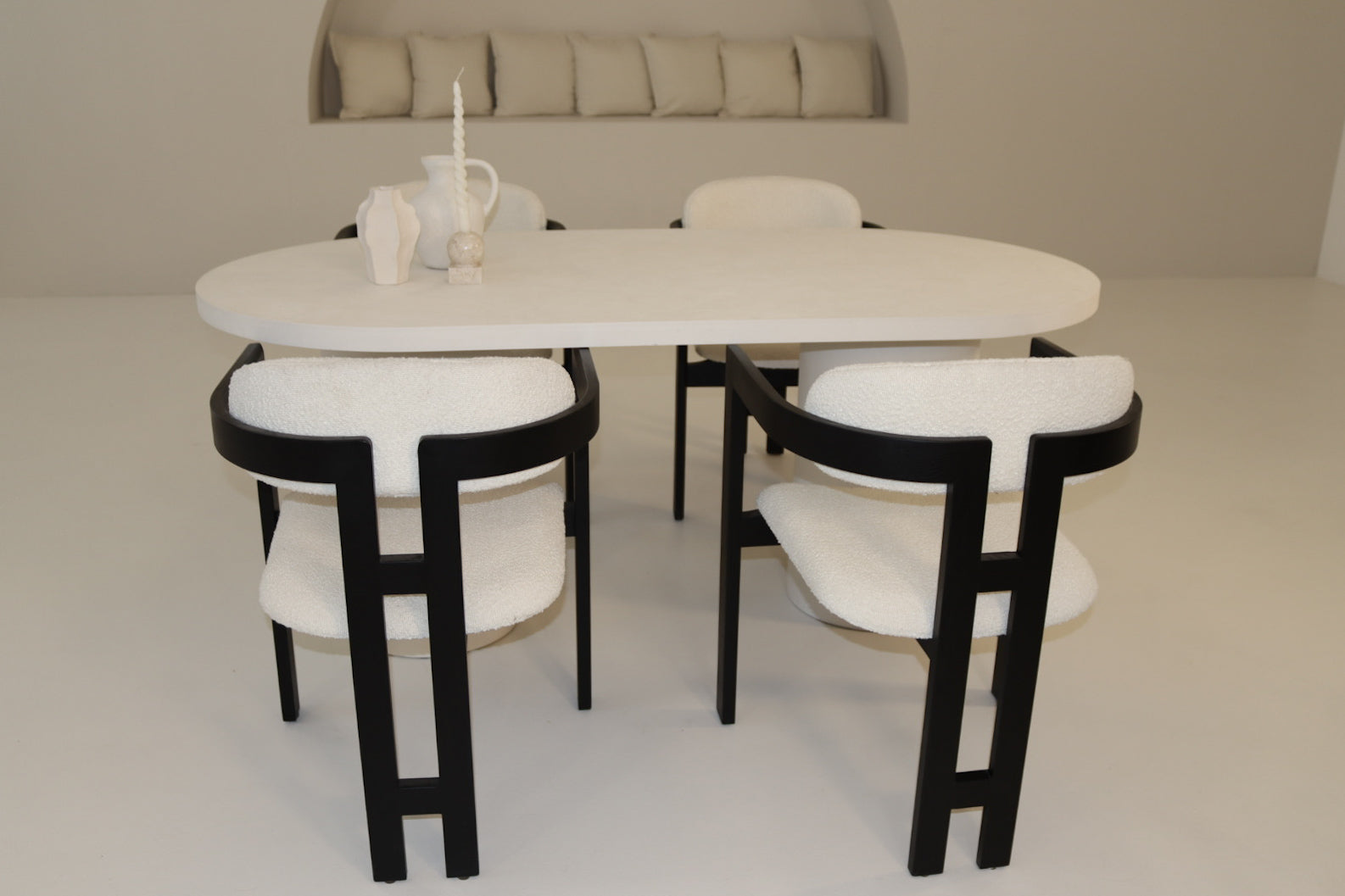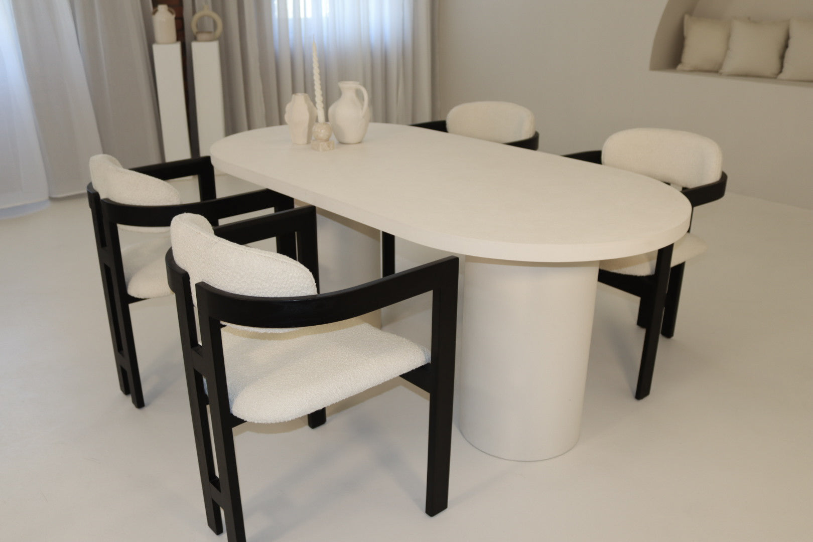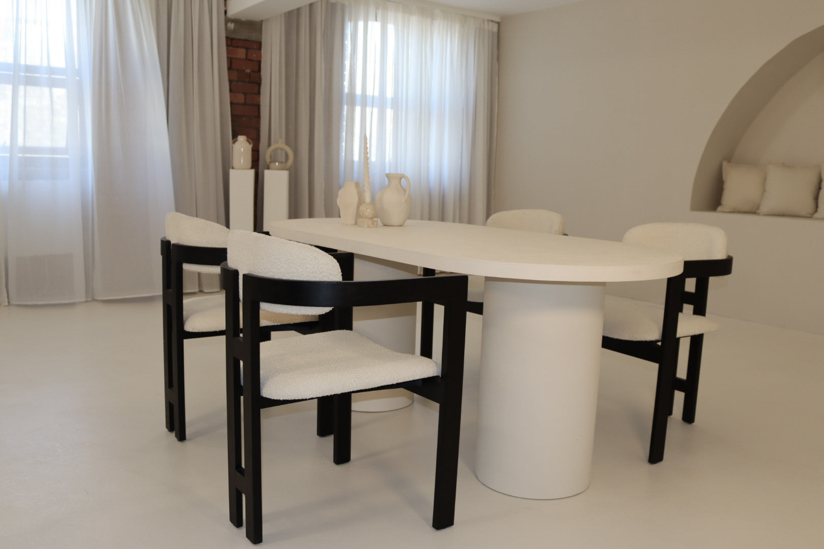 Cloud White Micro Cement Table & Rio Bouclé Chairs