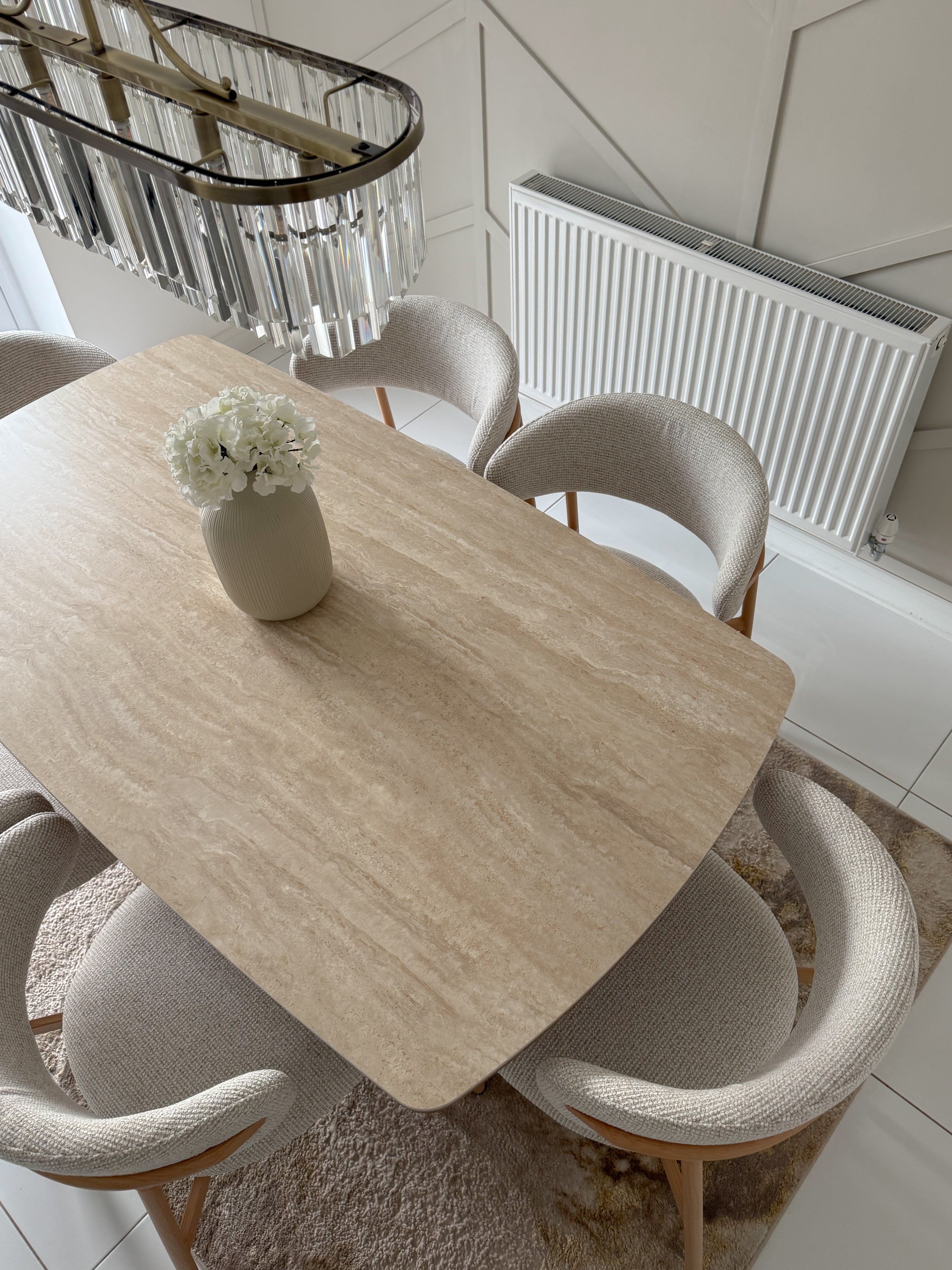 Elegant Surface: Tabletop finished with a layer of ceramic, giving the appearance of refined travertine.